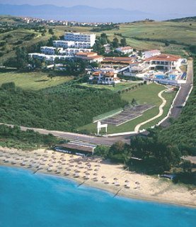 Hotelul este situat pe o panta verde din zona Tripiti, pe al treilea brat al peninsulei Halkidiki, Athos. Oraselul Ouranoupolis se afla la 5 minute de mers cu masina. Pe plaja cu nisip a hotelului, sezlongurile si umbrelele sunt gratuite daca se consuma ceva de la barul de pe plaja
