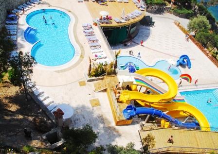 Hotel Alkoclar Kusadasi Adakule este situat la 80 km de aeroportul orasului Izmir, la 3 km de Kusadasi, la 14 km de cetatea antica Efes, pe malul marii. Construit in anul 1990, are suprafata totala de 47000 mp, ultima renovare - 2014. Hotelul este alcatuit din doua corpuri de 6 si 7 etaje.