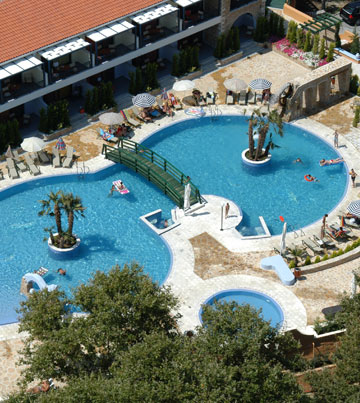 Scor Booking.com: 8.9 Fabulos Certificat de excelenta Trip Advisor. Hotelul imbina frumusetea peisajului inconjurator cu bunastarea moderna, verdeata luxurianta cu apele azurii ale golfului Toroneos, conditiile de lux cu principiile renumitei ospitalitati grecesti. Este alegerea ideala pentru cupluri, grupuri si familii deopotriva si poate satisface si cei mai pretentiosi turisti. Plaja Elia, langa care se afla, este ingusta si umbrita de pini. Incepand cu 01.01.2018 a fost introdusa taxa locala. In functie de clasificarea unitatii de cazare, aceasta variaza intre 0.5eur – 4eur/ camera/ noapte si se va achita de catre turisti la fata locului!Regulament