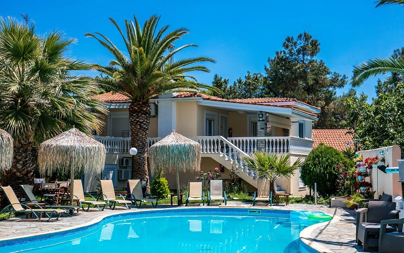 Hotelul este localizat in Potos, in fata plajei cu Blue Flag, langa hotelul Alexandra Beach.