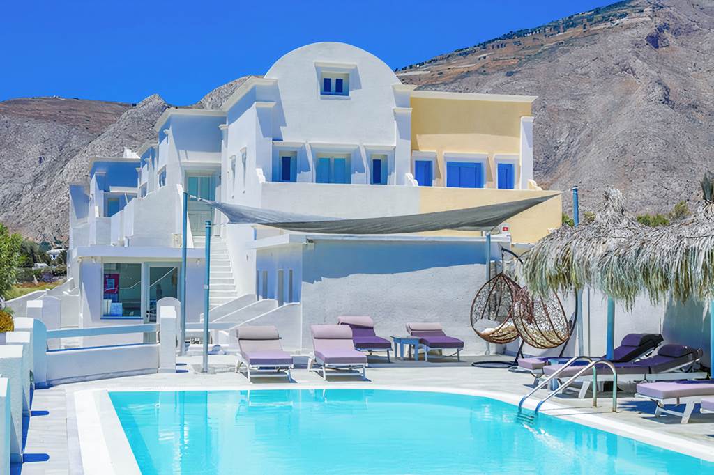 Superb 9.0 Booking.com Aqua Blue este un hotel nou, situat la 300 m de Santorini Water Park, chiar pe plaja proprie amenajata cu șezlonguri și umbrele, la 15 km distanta de Fira - capitala plină de viata a insulei Santorini, la 15 km distanta de Aeroportul International si la 10 km distanta de Portul Athinios. Pozitia privilegiata in inima statiunii Perissa ofera acces facil la sporturi nautice, restaurante, taverne, magazine si cluburi! Avand in vedere ca zona din fata hotelului este pietonala si nu permite accesul autovehiculelor, la transfer turistii vor fi lasati la aproximativ 300 m de hotel. Incepand cu 01.01.2018 va fi introdusa taxa locala. In functie de clasificarea unitatii de cazare, aceasta variaza intre 0.5eur – 4eur/ camera/ noapte si se va achita de catre turisti la fata locului!Regulament