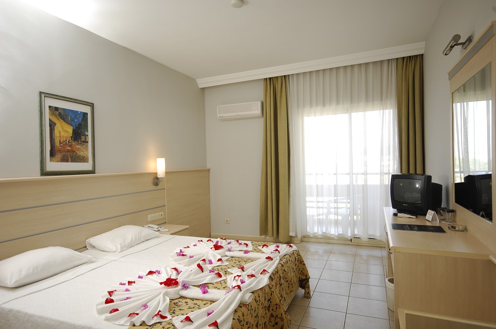 Hotelul dispune de camere standard situate in cladirea principala, avans vedere la gradina si vedere la mare, large room situate tot in cladirea principala. Camerele standard dispun de TV satelit, seif, telefon, aer conditionat, uscator de par, mini bar. Internetul Wi-FI in camere si in zonele publice este contra cost, in lobby bar fiind gratuit.