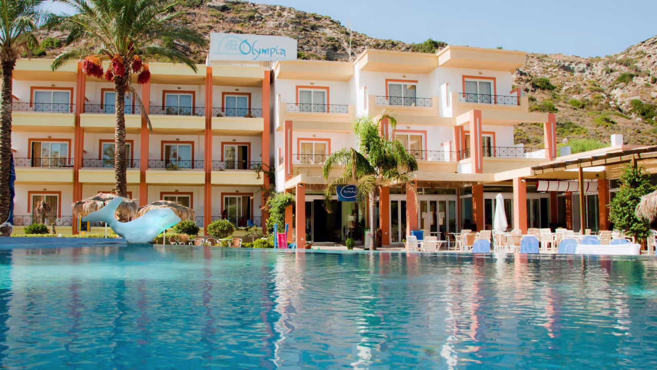 Hotelul este situat pe plaja din Faliraki, la 11 km distanta de centrul oraului Rodos