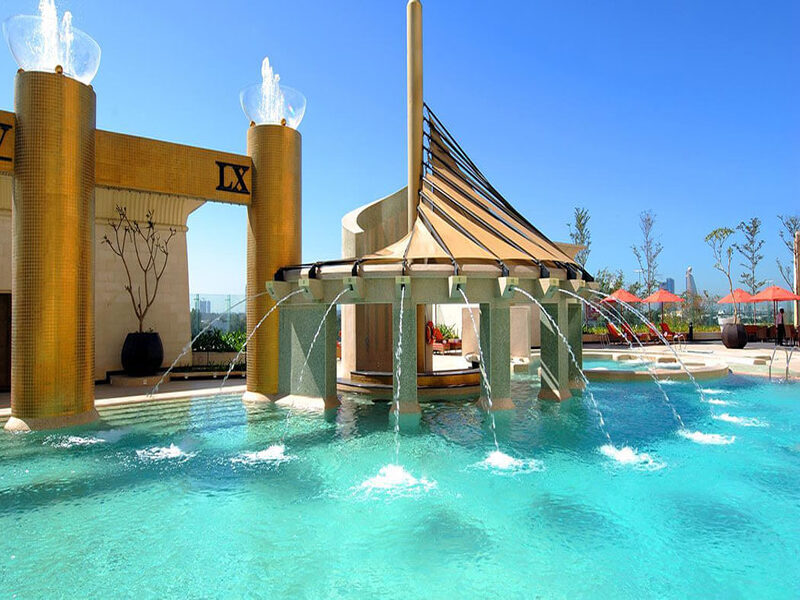 Hotelul dispune de 7 localuri cu o gamă variată de preparate culinare internaţionale, printre care se numără restaurantul japonez premiat TOMO şi Raffles Salon, care oferă ceaiul tradiţional de după-amiază. De asemenea, centrul spa oferă tratamente exclusive de întinerire, inspirate de tradițiile asiatice, Orientului Mijlociu și europene, centrul fitness oferă aparate multifuncționale de ultimă generație, iar piscina în aer liber este completată de un jacuzzi în aer liber încălzit, 4 șezlonguri și o piscină pentru copii.