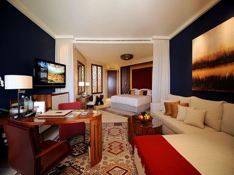 Camerele hotelului conțin ornamente lucrate manual și țesături de lux, pornind de la 70m patrati de spațiu și un stil luxos, oferind un decor inspirat din Orientul Mijlociu și încorporând un design asiatic elegant și contemporan. Toate camerele au balcon privat care oferă imagini panoramice ale orașului Dubai, TV cu ecran plat, minibar şi facilități gratuite de ceai și cafea. Sistemul digital interactiv din cameră le permite oaspeţilor să acceseze şi să gestioneze toate facilităţile prin intermediul televizorului sau al unui iPad.