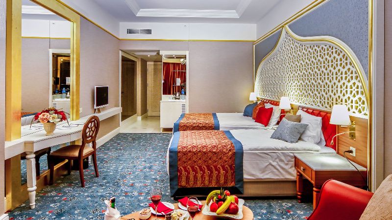 Bine 7.6 -Booking.com Hotelul Royal Taj Mahal este construit pe o suprafata de 40.000m2 si a fost deschis in iunie 2015. El se afla situat la o distanta de 5km de centrul orasului Side, 10 km de Manavgat si 48km de aeroportul din Antalya.Regulament