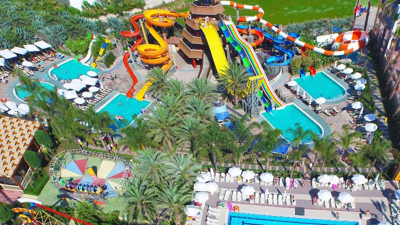 Hotelul ofera 450 camere, restaurant principal, patiserie, 3 restaurante a-la-carte, 8 baruri, piscine exterioare cu tobogane, piscina interioara, complex sportiv, 5 terenuri de tenis, animatie pe timpul zilei si serii, miniclub, centru Spa & Wellness, centru de frumusete, internet cafe, centru shopping.