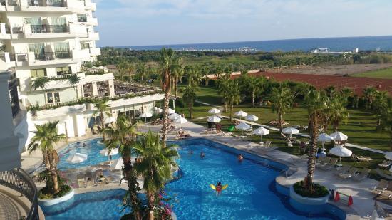 Hotelul dispune de 252 de camere, 4 restaurante, 5 baruri, un club de noapte, o cafenea, 2 piscine pentru adulti, plaja privata cu nisip si pietricele dotata cu sezlonguri, umbrele si prosoape de plaja, pavilioane, lift, magazine, centru de infrumusetare, centru de fitness, sali de conferinte, internet cafe, internet wi-fi, cinema, teren de tenis, mese de tenis, room service, inchiriere masini/biciclete/motociclete, asistenta medicala, spalatorie, fax, serviciu shuttle pentru centrul de shopping Lyra Park.