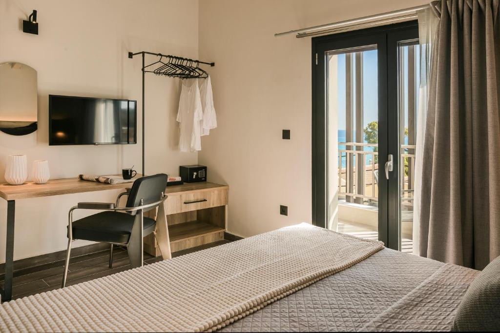 Hotelul este situat intr-o minunata gradina de bougainvilleas, la 100 metri de plaja si la numai 3 minute de mers pe jos de centrul orasului si de taverne. (proprietatea este cotata pentru localizare la 9.9 pe booking.com).