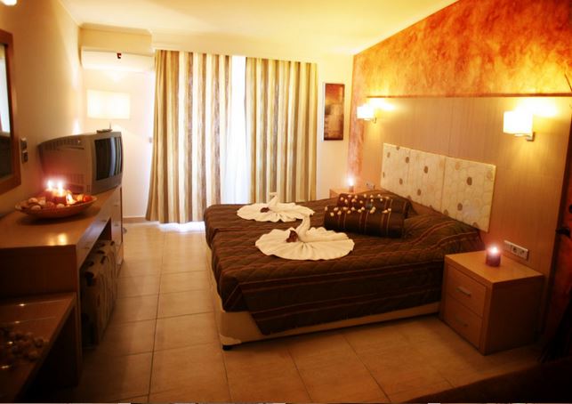 Toate camerele hotelului au chicineta, frigider, TV, aer conditionat, fierbator electric, toaster, seif (contra cost: 2 euro/zi, se achita la receptie), baie cu dus, acces la internet WIFI (contra cost: 2 euro/zi, se achita la receptie). Camerele duble au 21 mp si capacitate maxima de 2 adulti si 1 copil. Camerele Family cu paturi supraetajate au 21 mp si capacitate maxima de 2 adulti si 2 copii. Camerele Superior pentru 3 persoane au 25 mp, un pat dublu si o canapea sau 3 paturi single si un pat pliant, avand capacitatea maxima de 3 adulti si 1 copil. Camerele Sperior pentru 4 persoane au 25 mp, au 2 paturi single si 2 paturi suprapuse si capacitate maxima de 2 adulti si 2 copii sau 3 adulti.